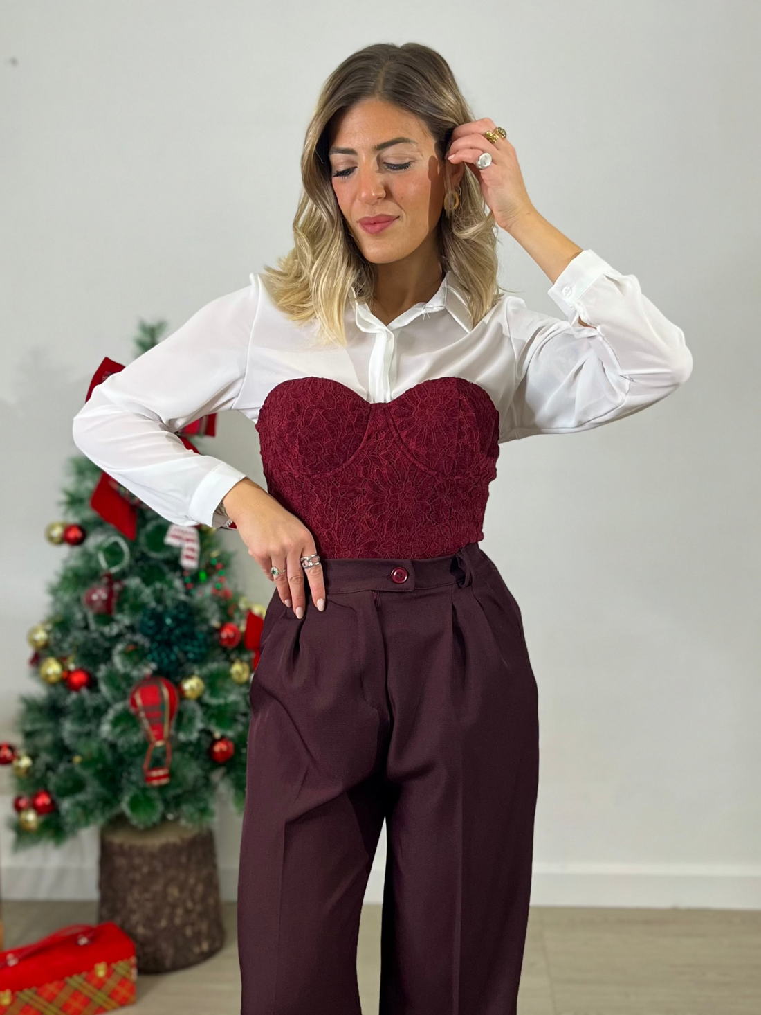 Shorts in velluto e pizzo a contrasto - bordeaux