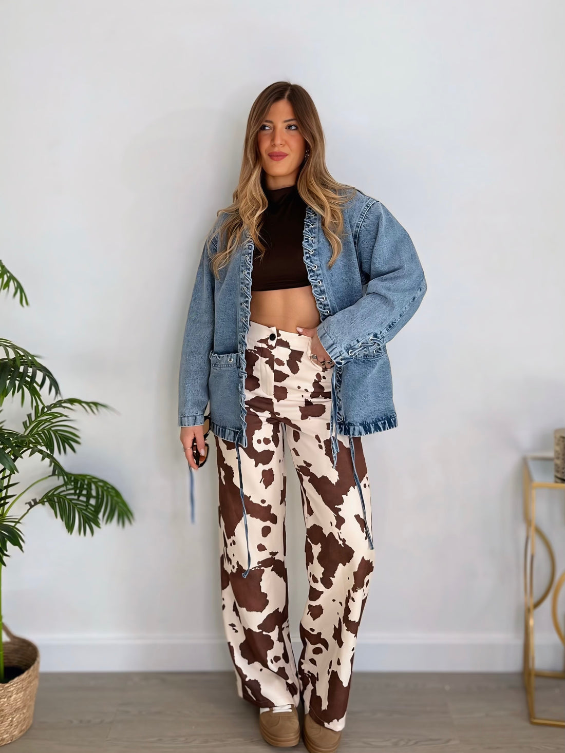 Pantalone con stampa cow, taglia unica. Veste dalla S alla M/L (44). Chiusura con cerniera...