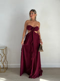 Abito lungo semi velato con cut-out frontale, schiena semi scoperta e semi foderato.