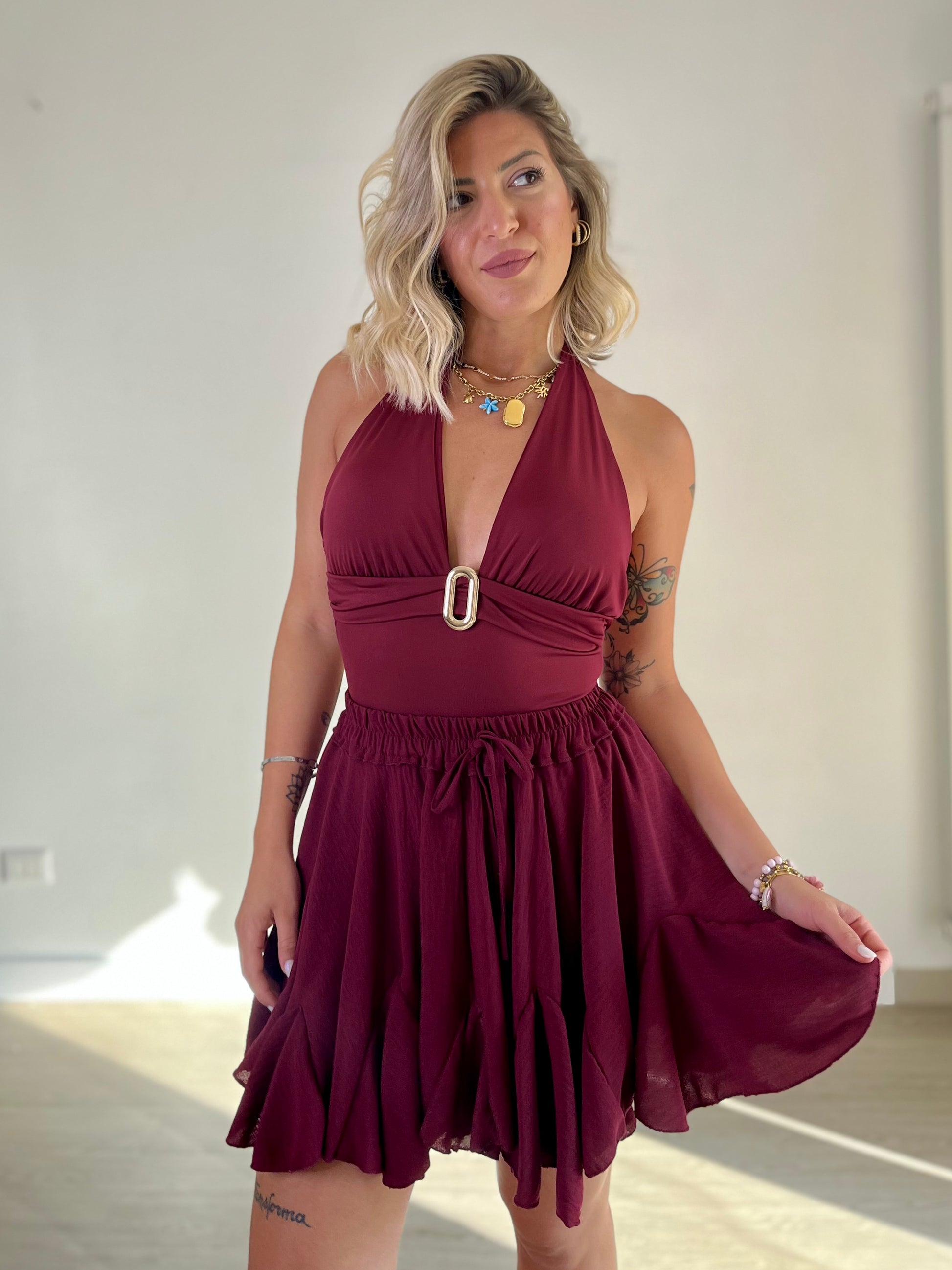 Body con coppe imbottite, schiena scoperta e allacciatura dietro al collo.