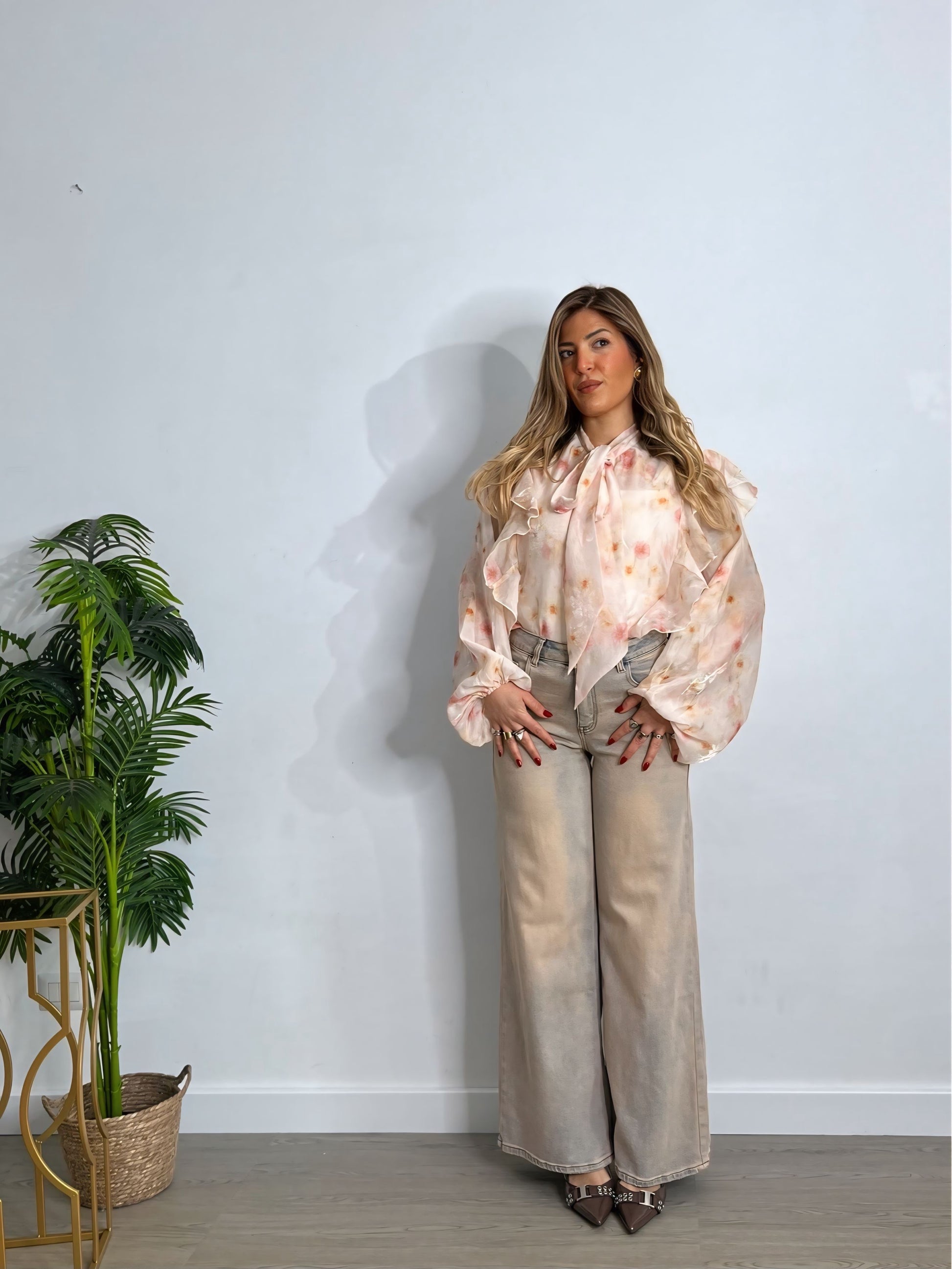 Camicia semitrasparente con fantasia floreale e canotta integrata.