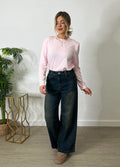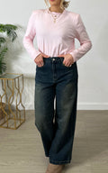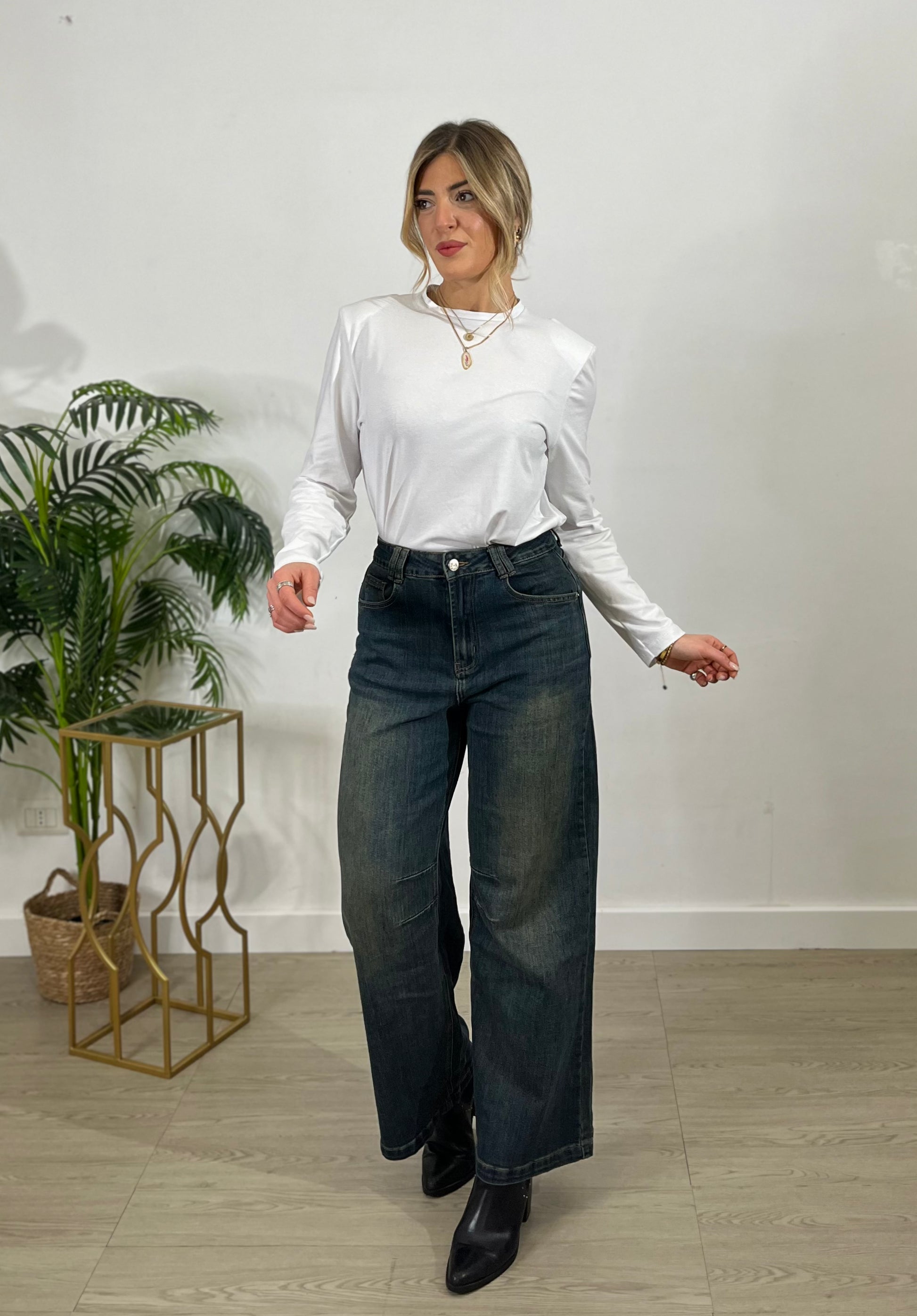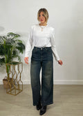 Jeans wide leg a vita alta, con gamba ampia e dritta che scende fluida fino al fondo.