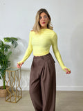Linea aderente, ideale da abbinare a gonne o pantaloni a vita alta.
