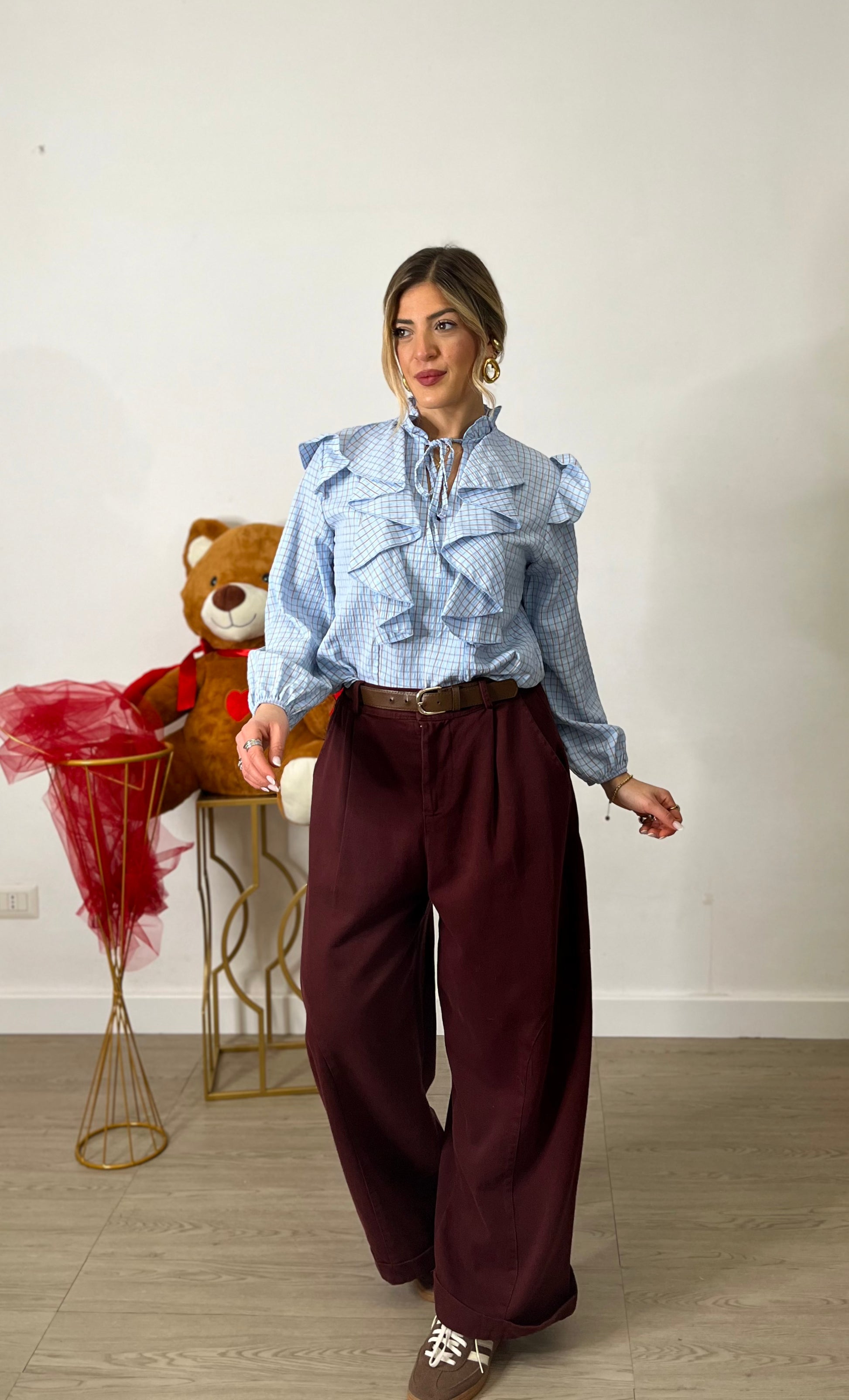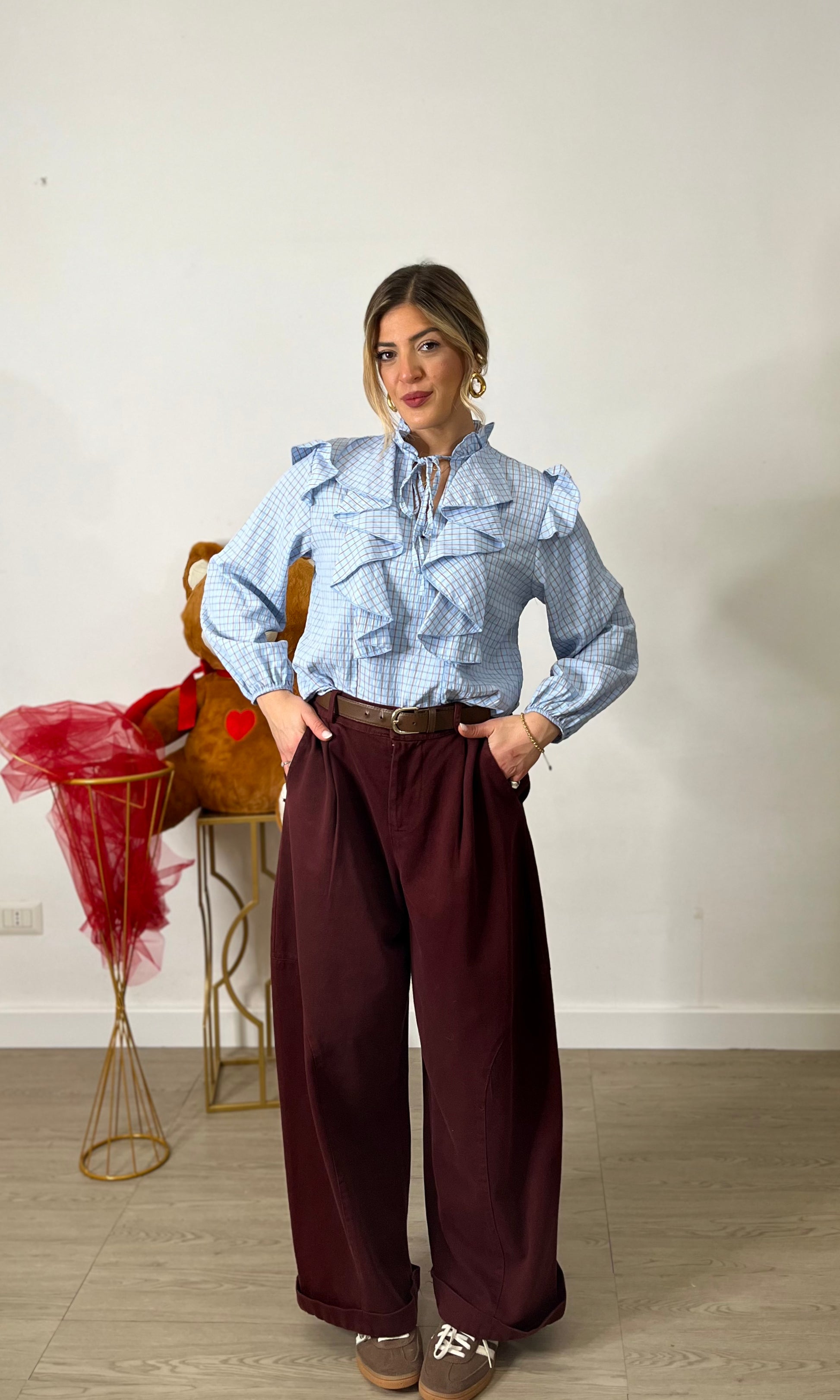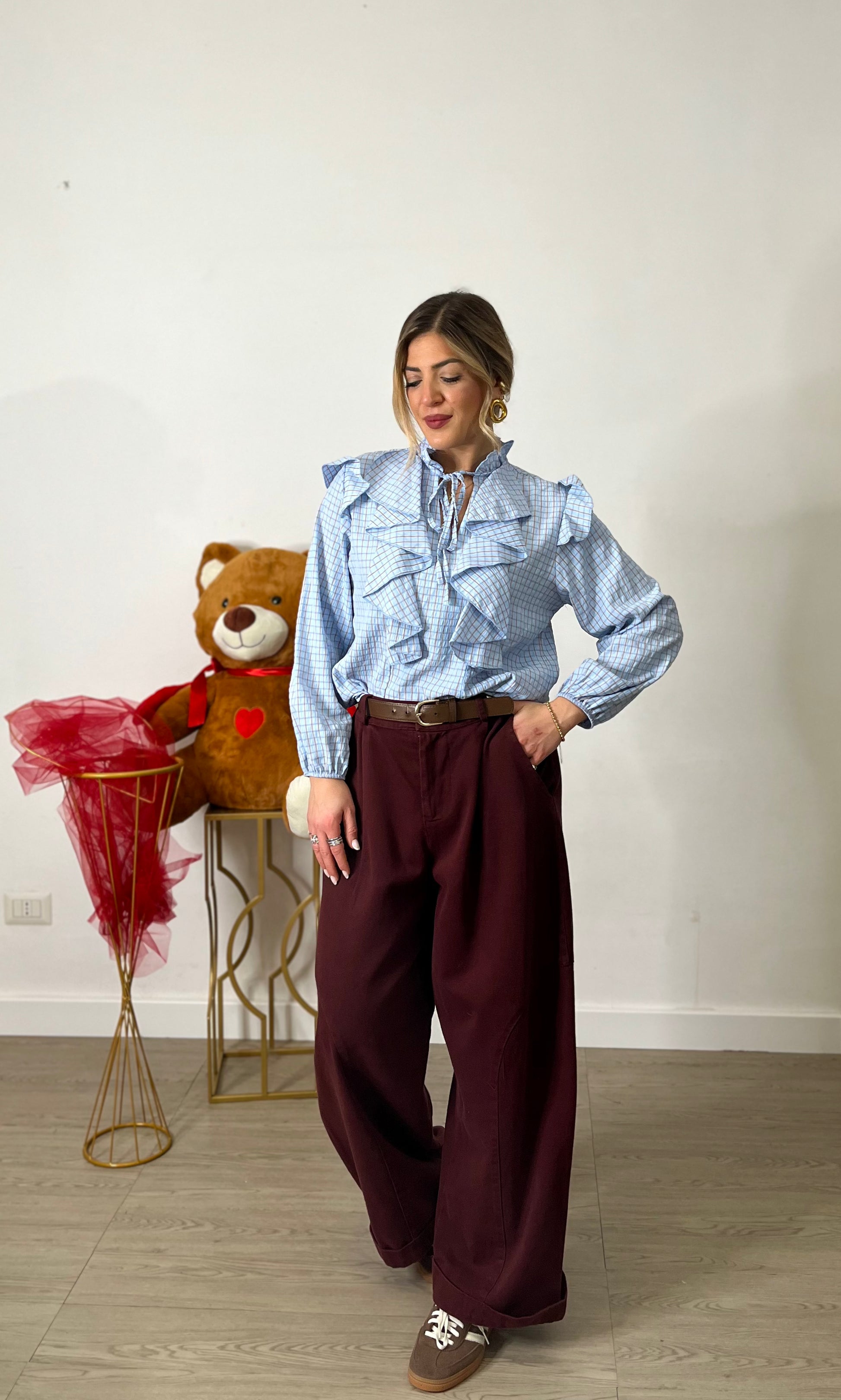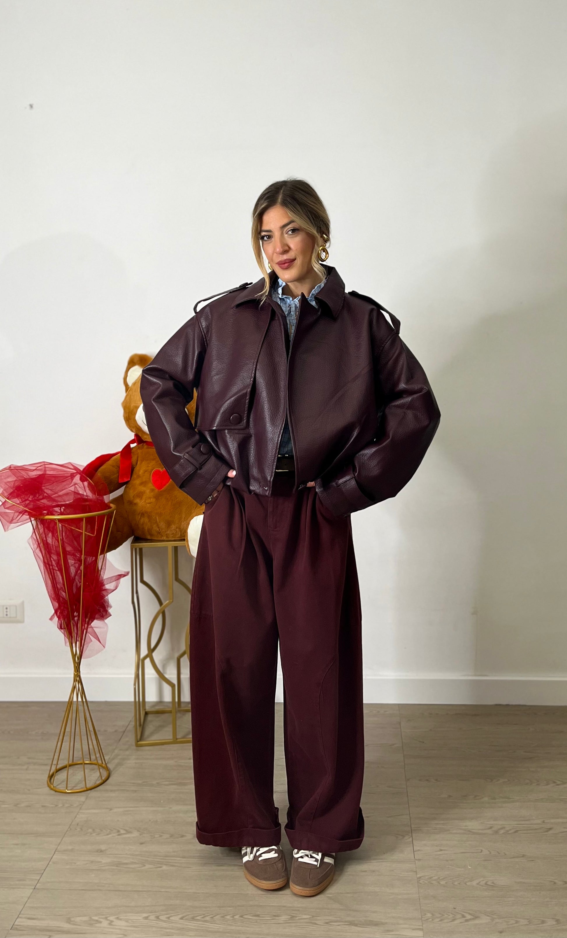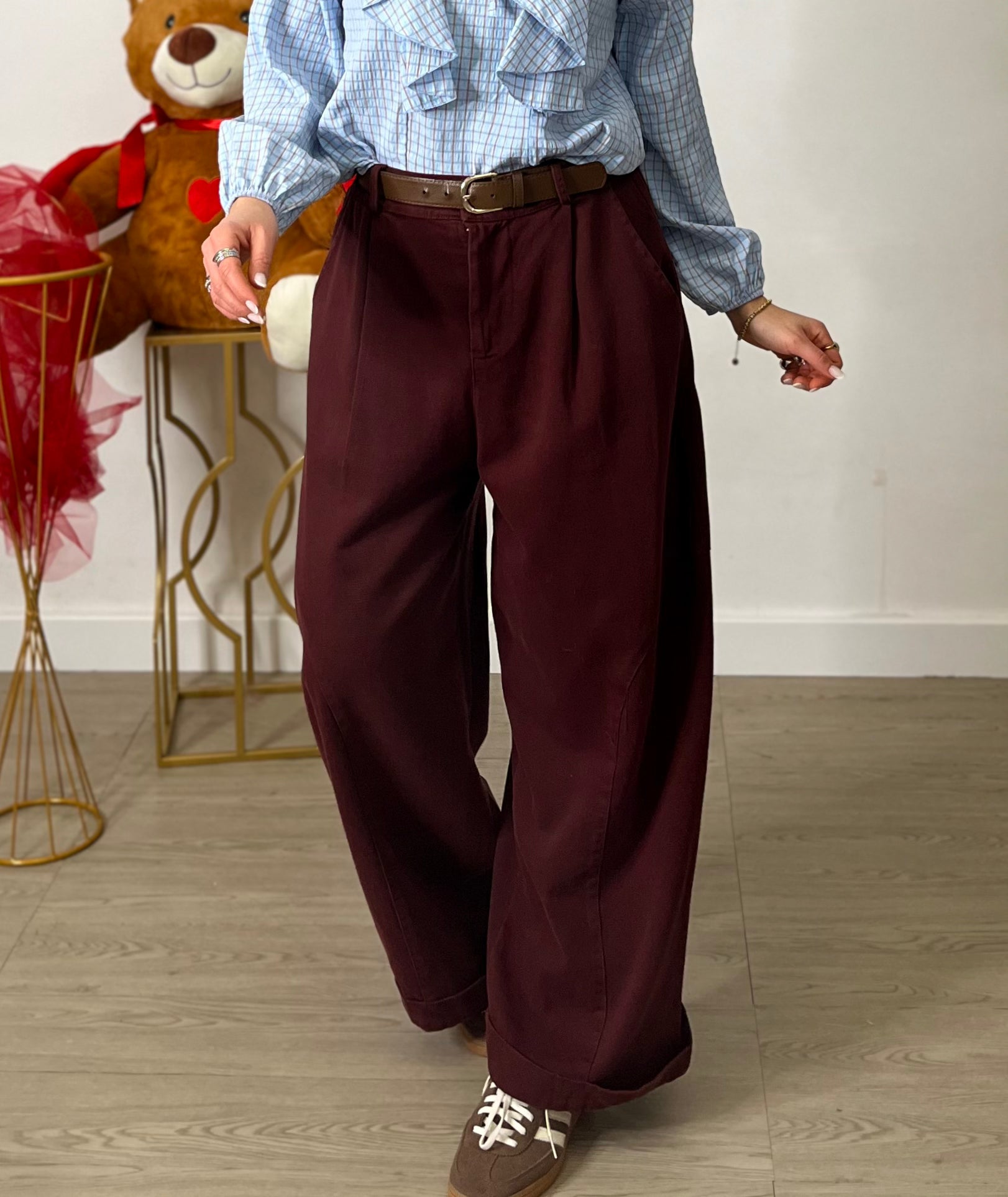 Pantalone elasticizzato con elastico in vita, oversize, gamba larga, vestibilità oversize.