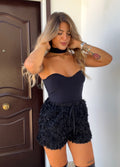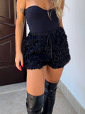 Pantaloncino con applicazione fiori 3D ed elastico in vita.