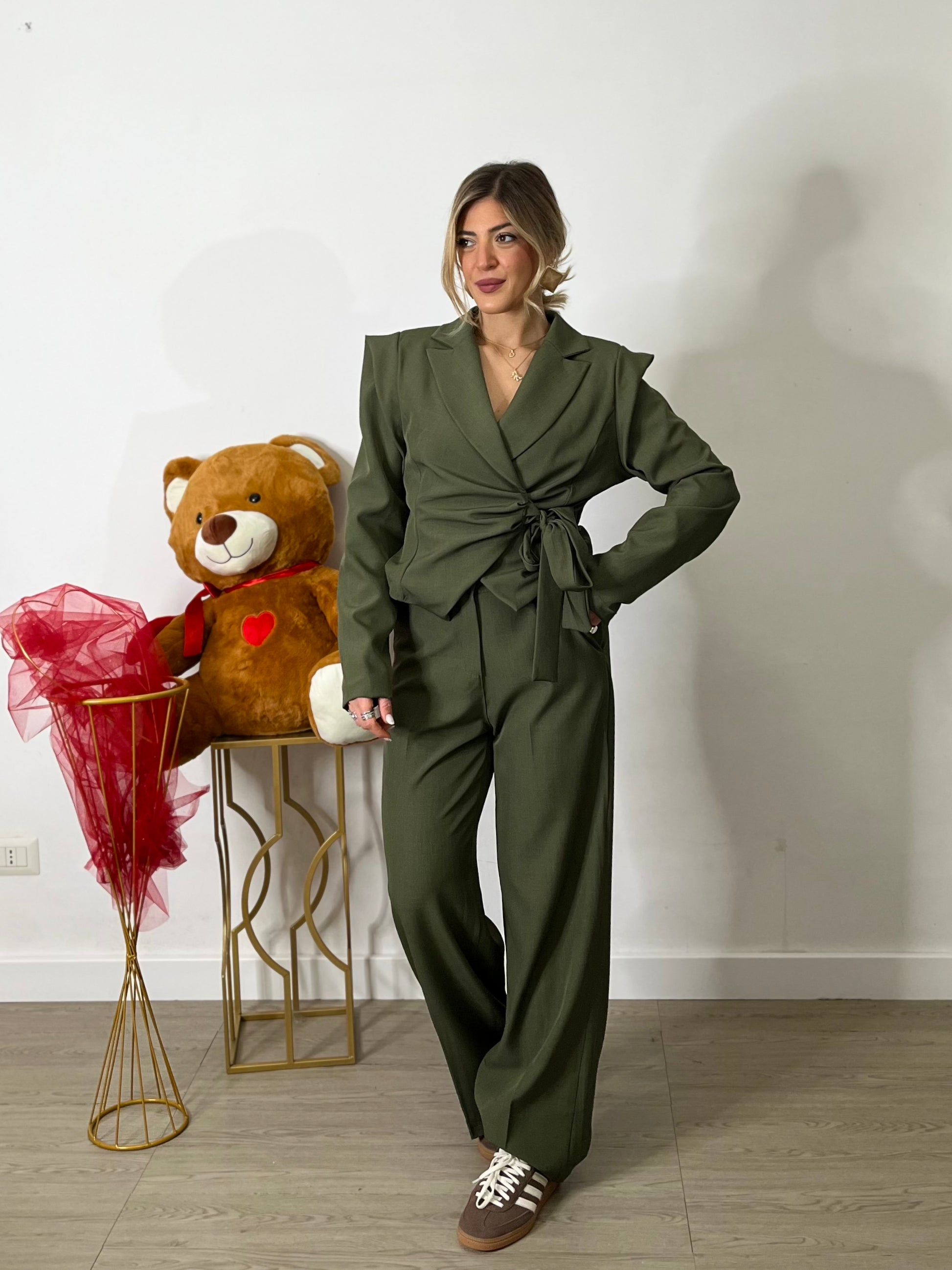 Tailleur blazer crop a portafoglio - verde