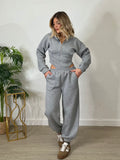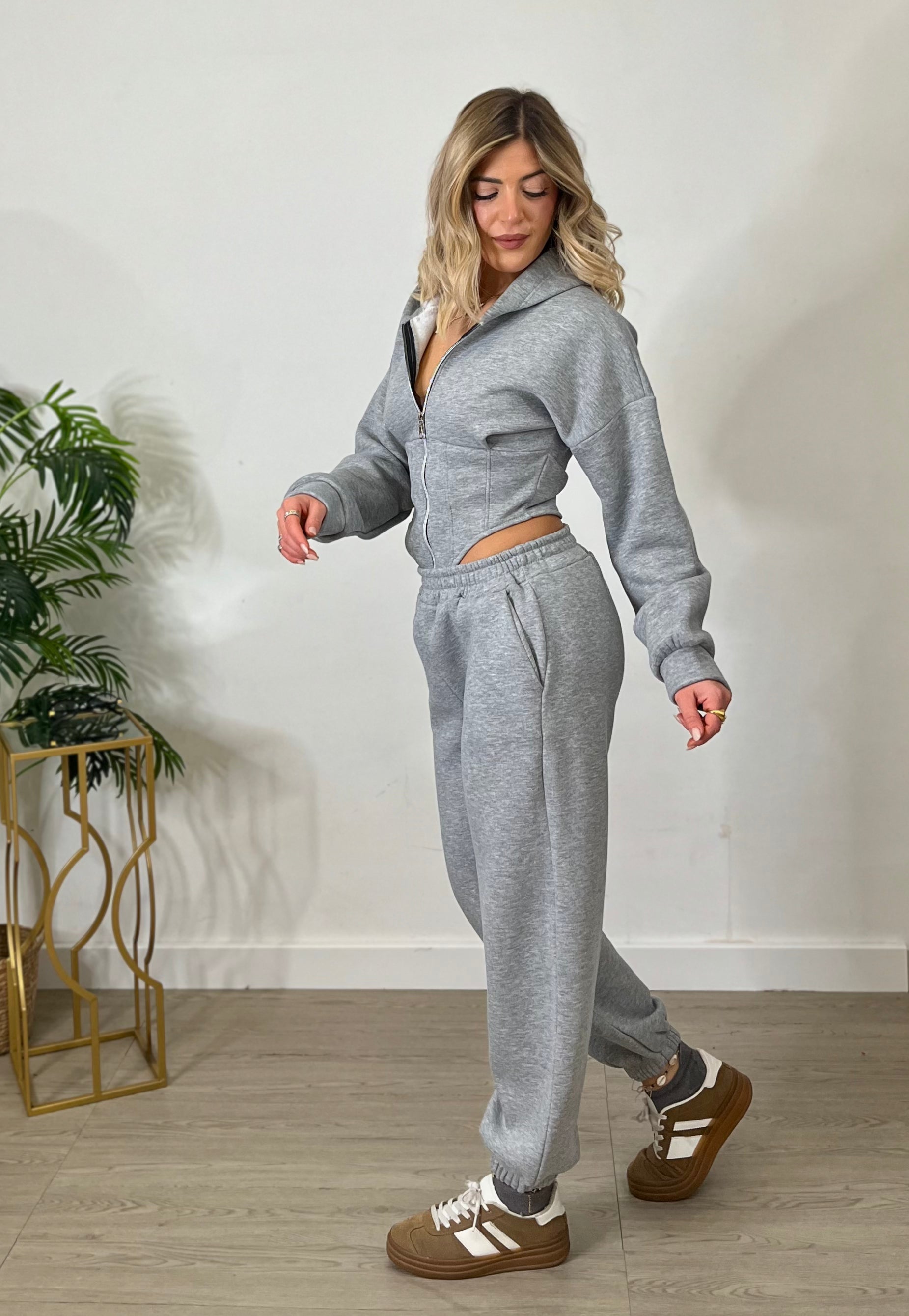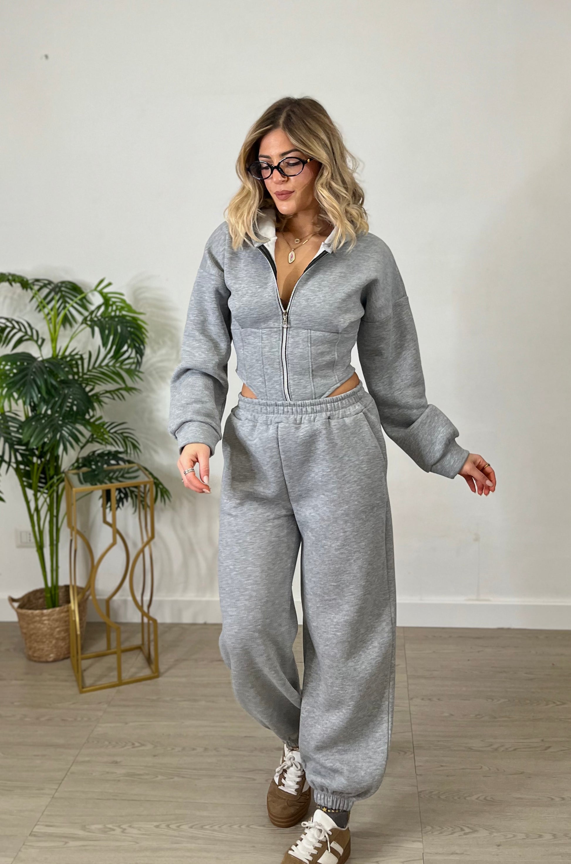 Tuta cropped con corsetto e joggers - grigia